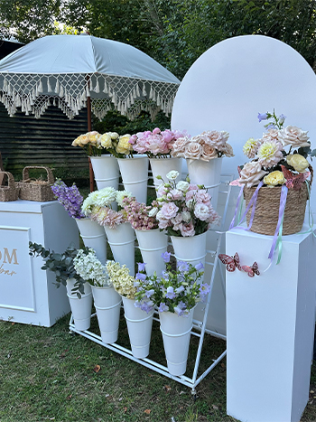 More than just a beautiful activity, our Bloom Bar also serves as elegant event décor, enhancing your space with fresh flowers in a contemporary style. It’s an experience that delights the senses, sparks creativity, and ensures your celebration stands out.